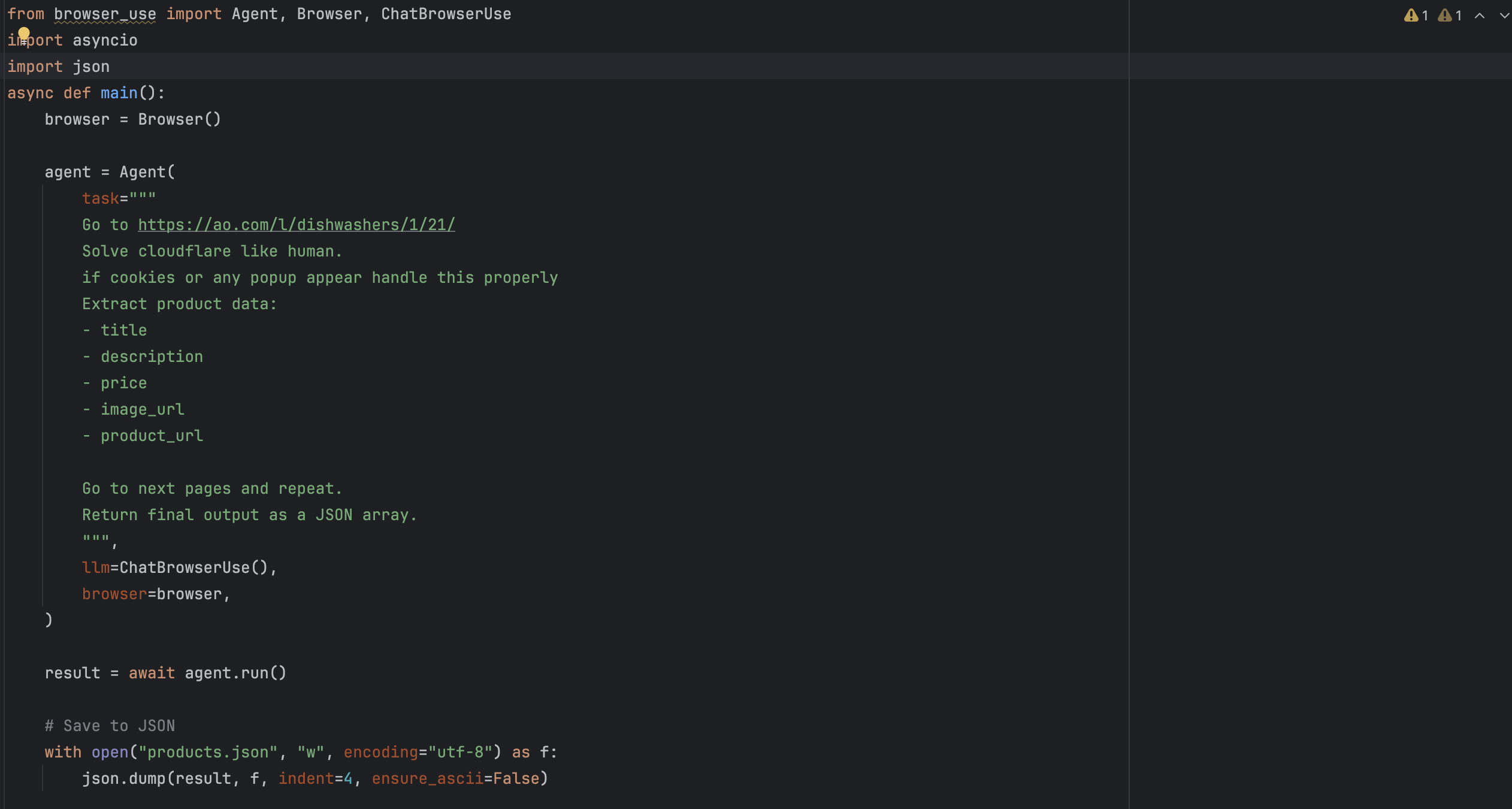 Built an AI-powered web scraping agent using browser_use to extract structured product data from dynamic e-commerce websites.